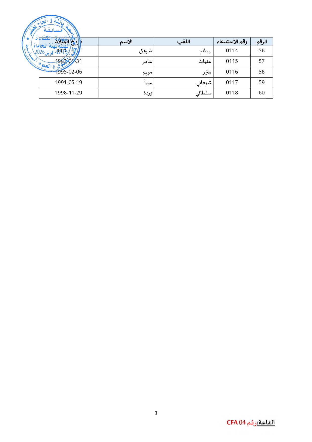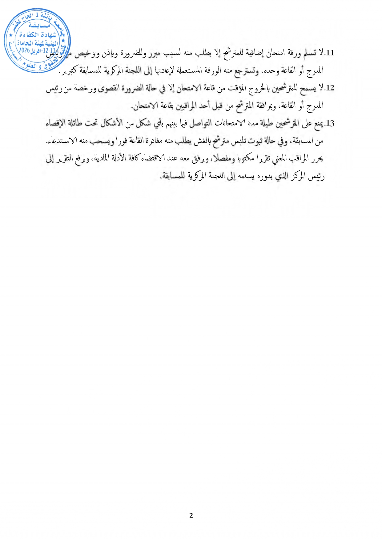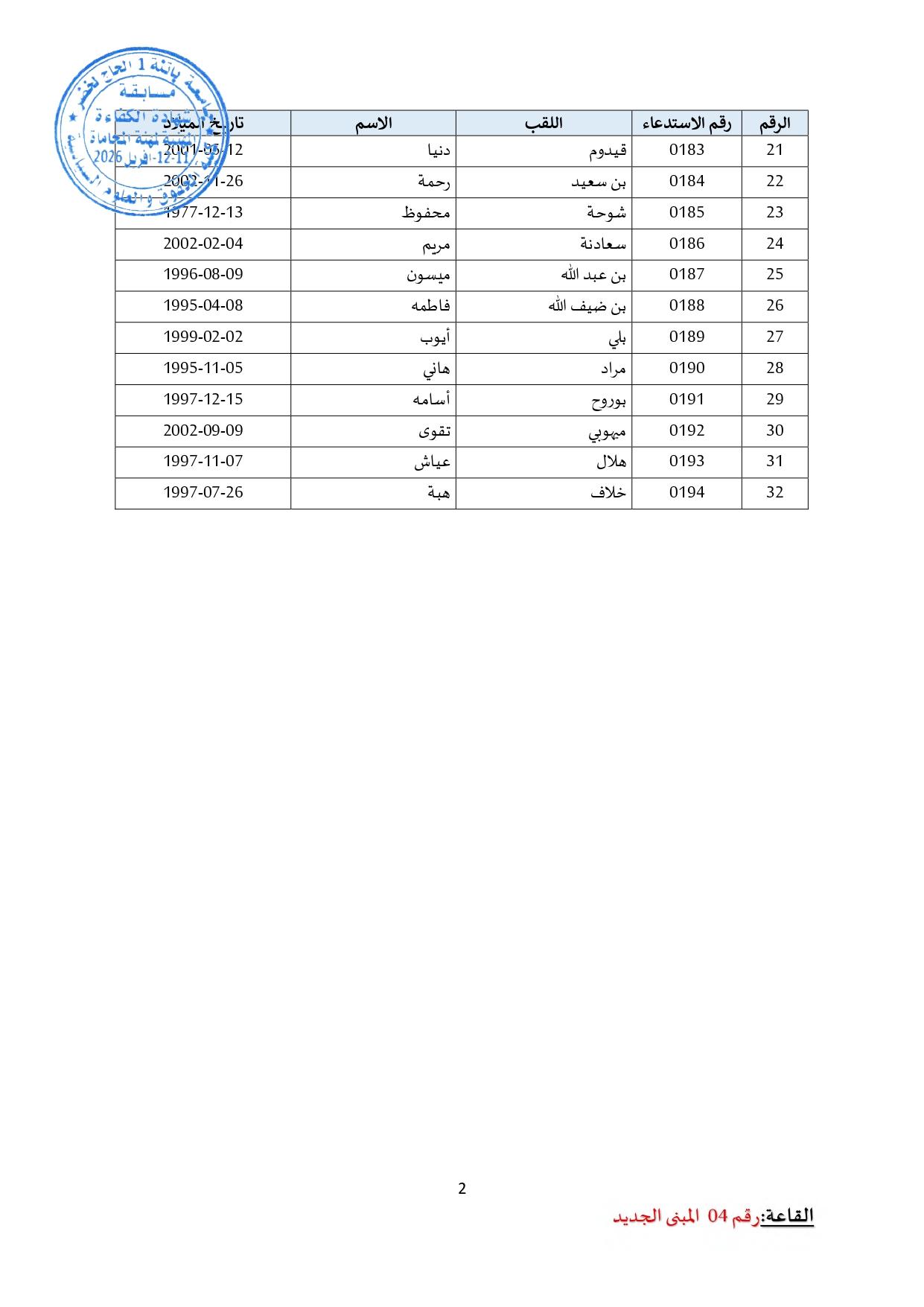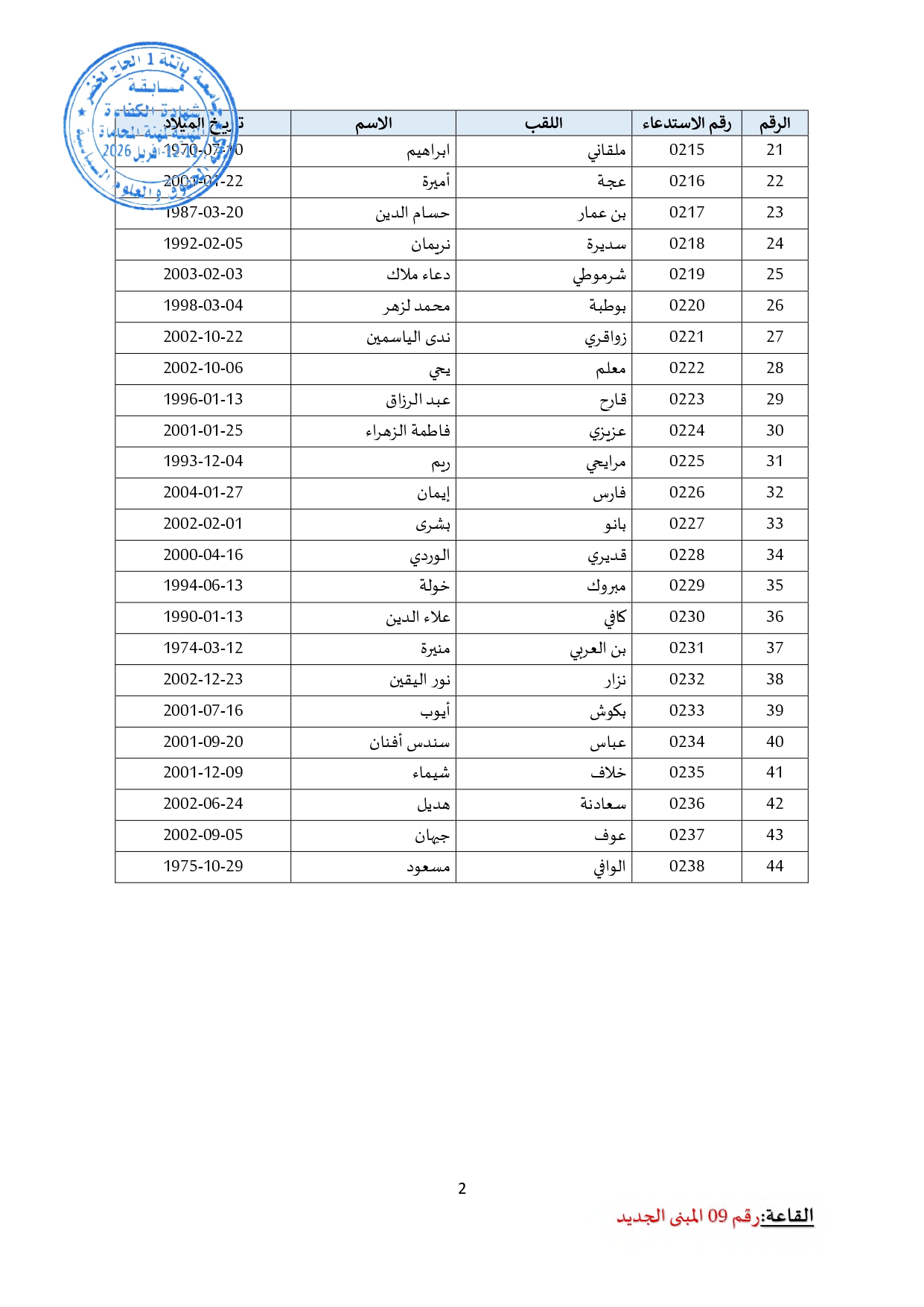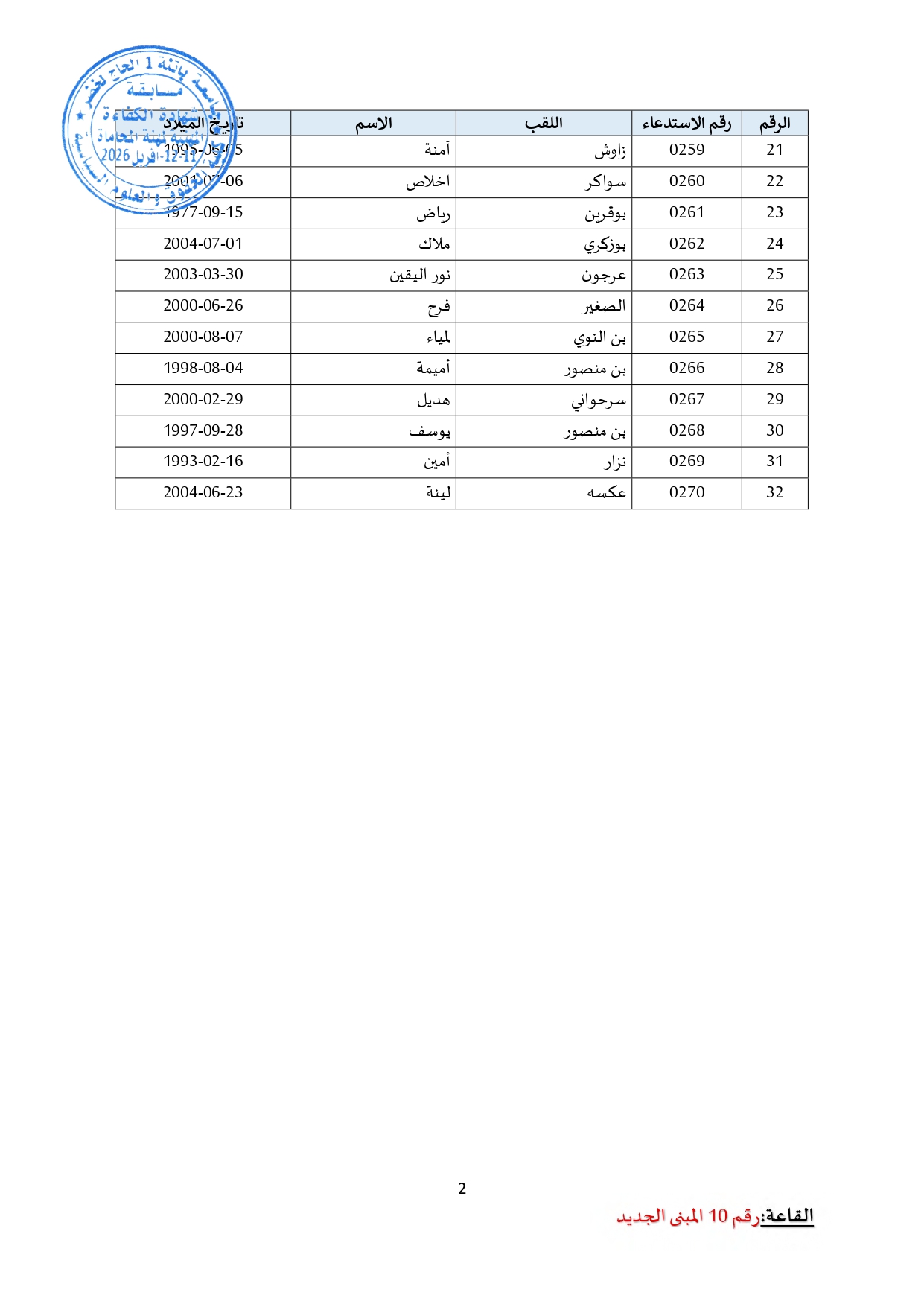 توزيع مترشحي مسابقة الالتحاق بالتكوين للحصول على شهادة الكفاءة لمهنة المحاماة على القاعات و المدرجات – دورة 2026 –