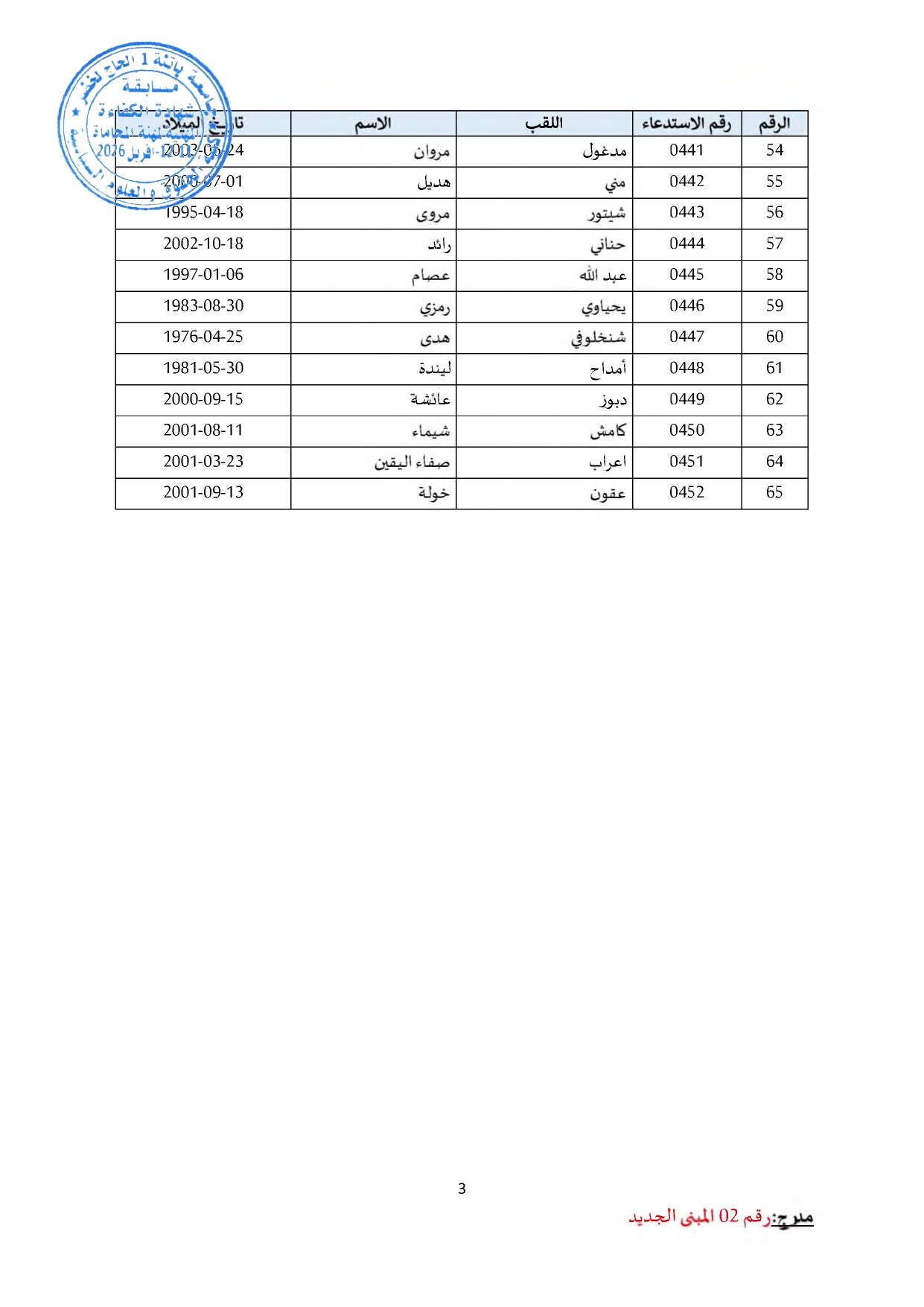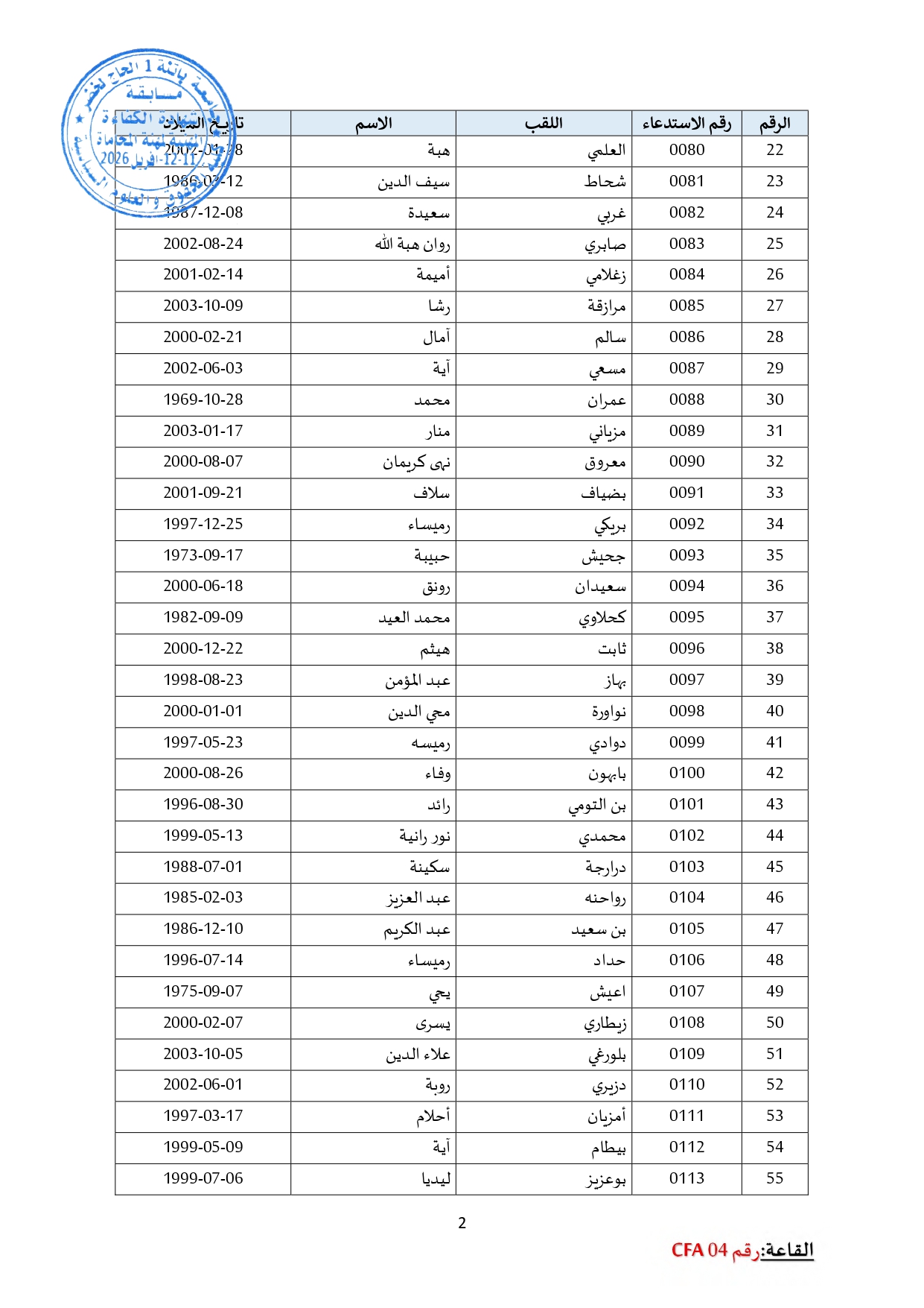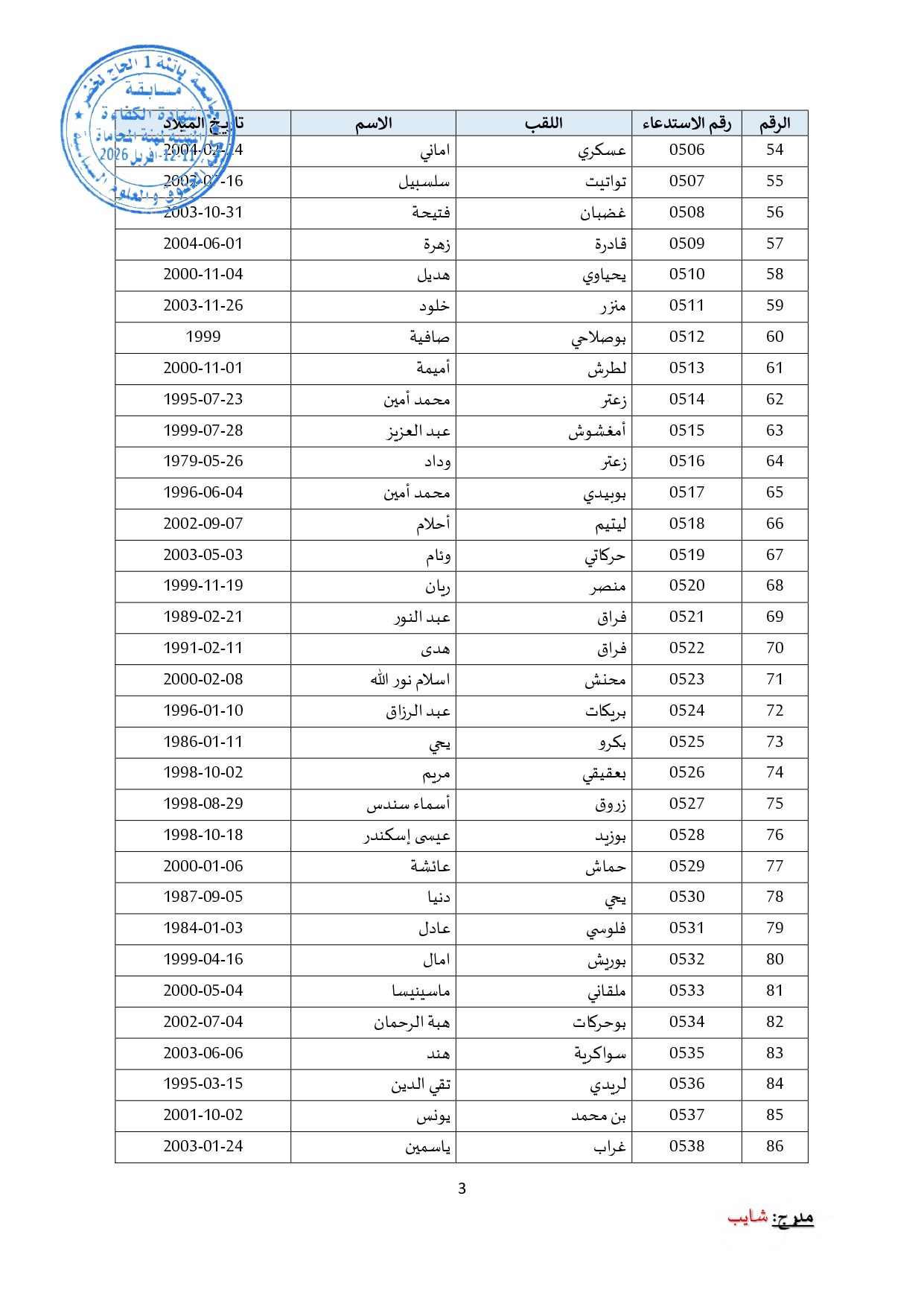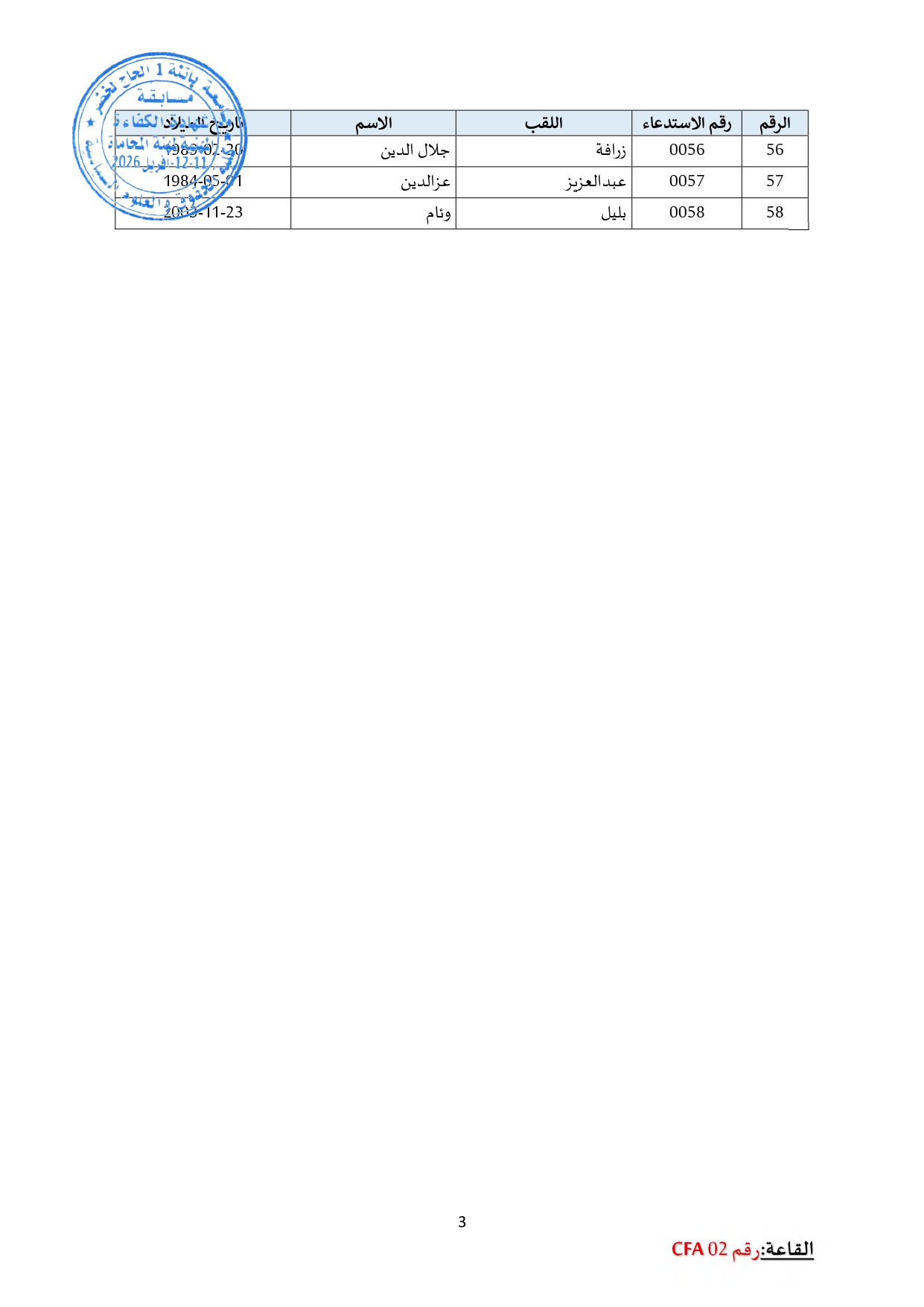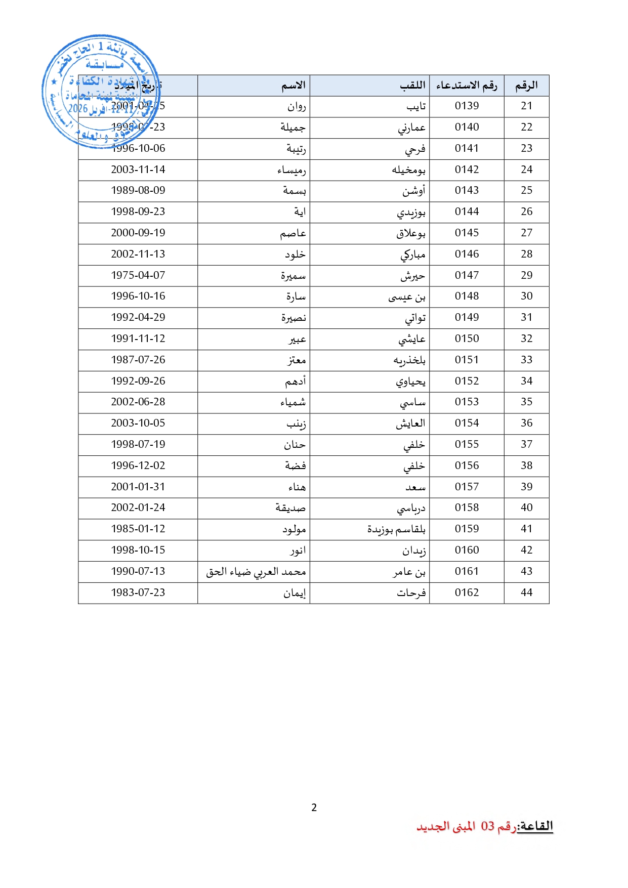 توزيع مترشحي مسابقة الالتحاق بالتكوين للحصول على شهادة الكفاءة لمهنة المحاماة على القاعات و المدرجات – دورة 2026 –
