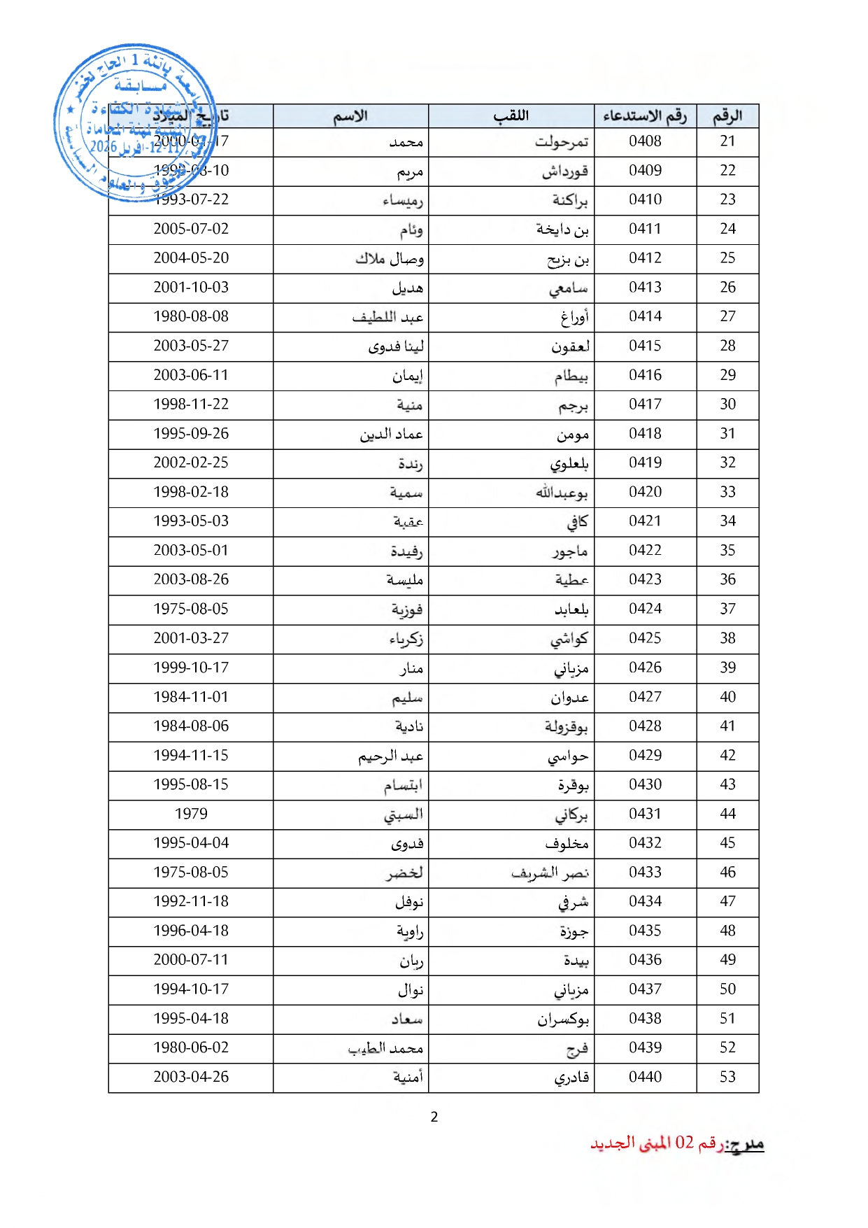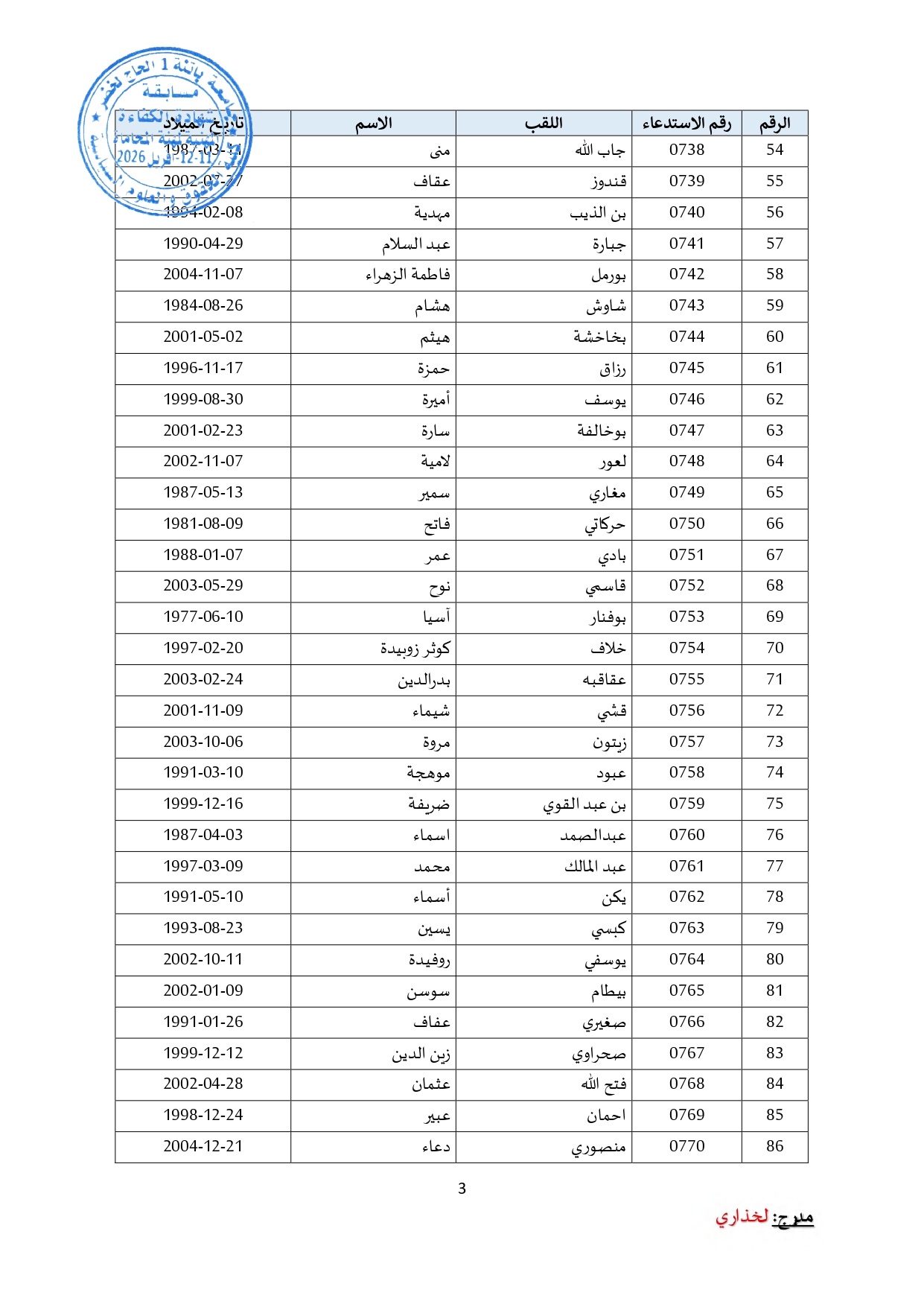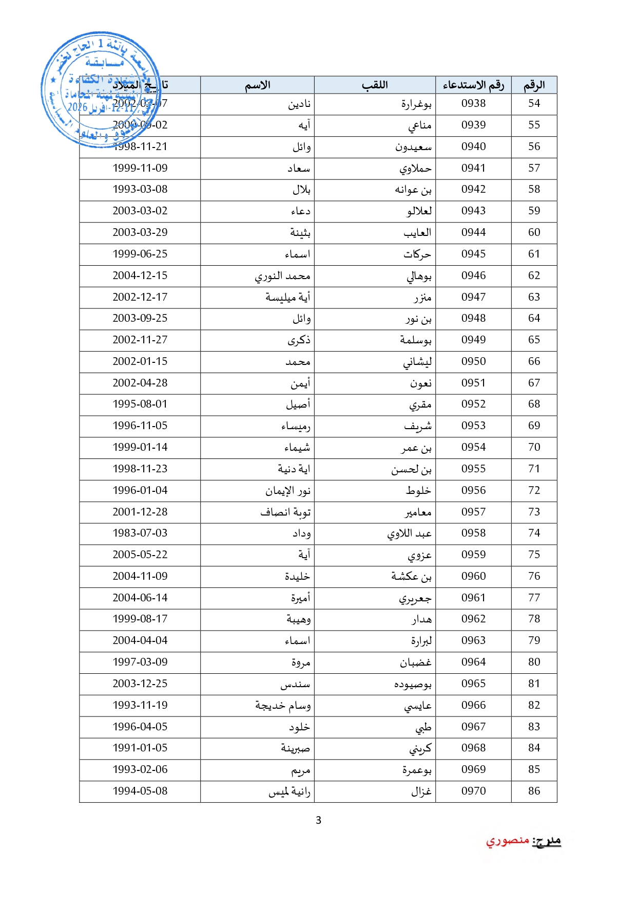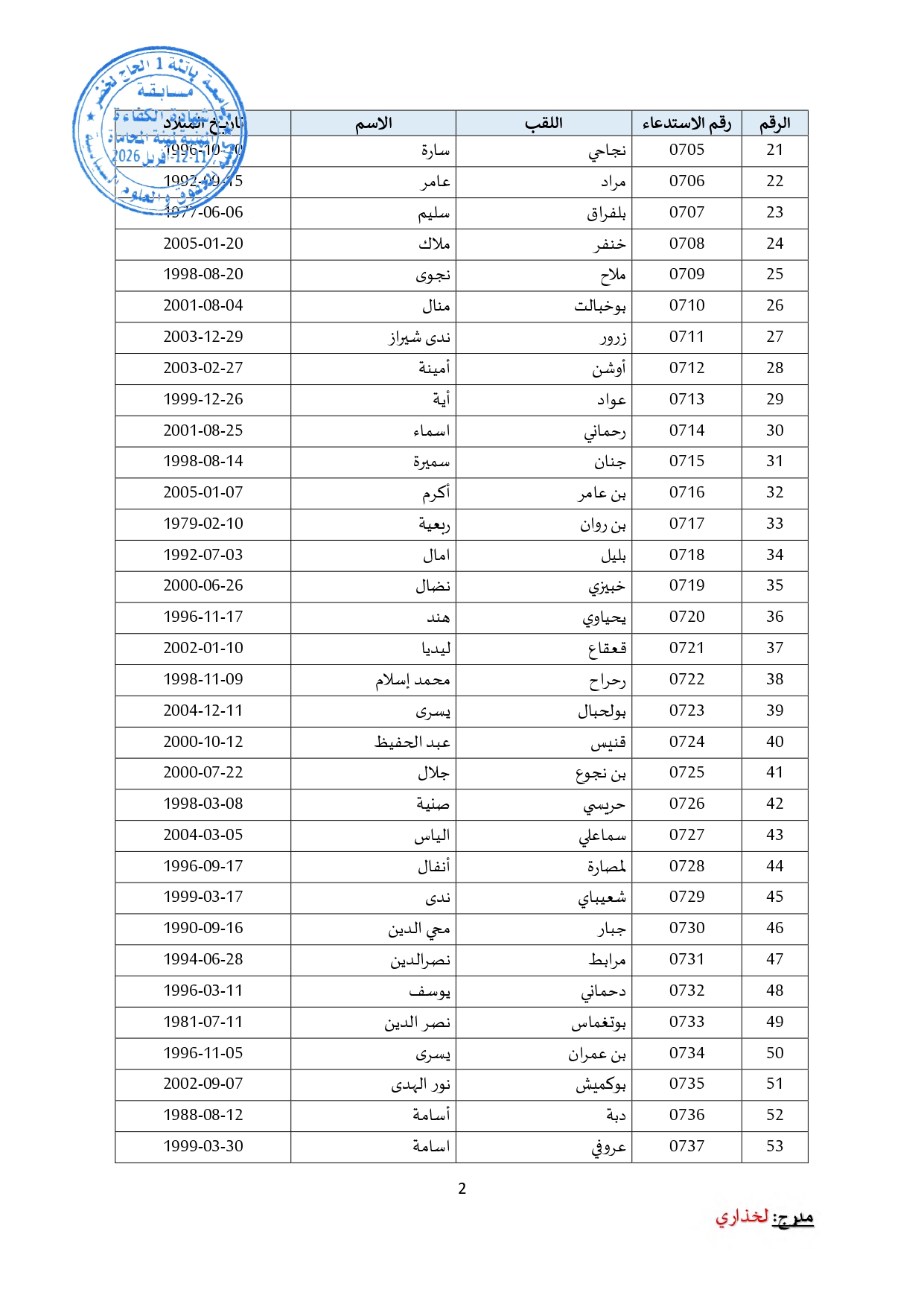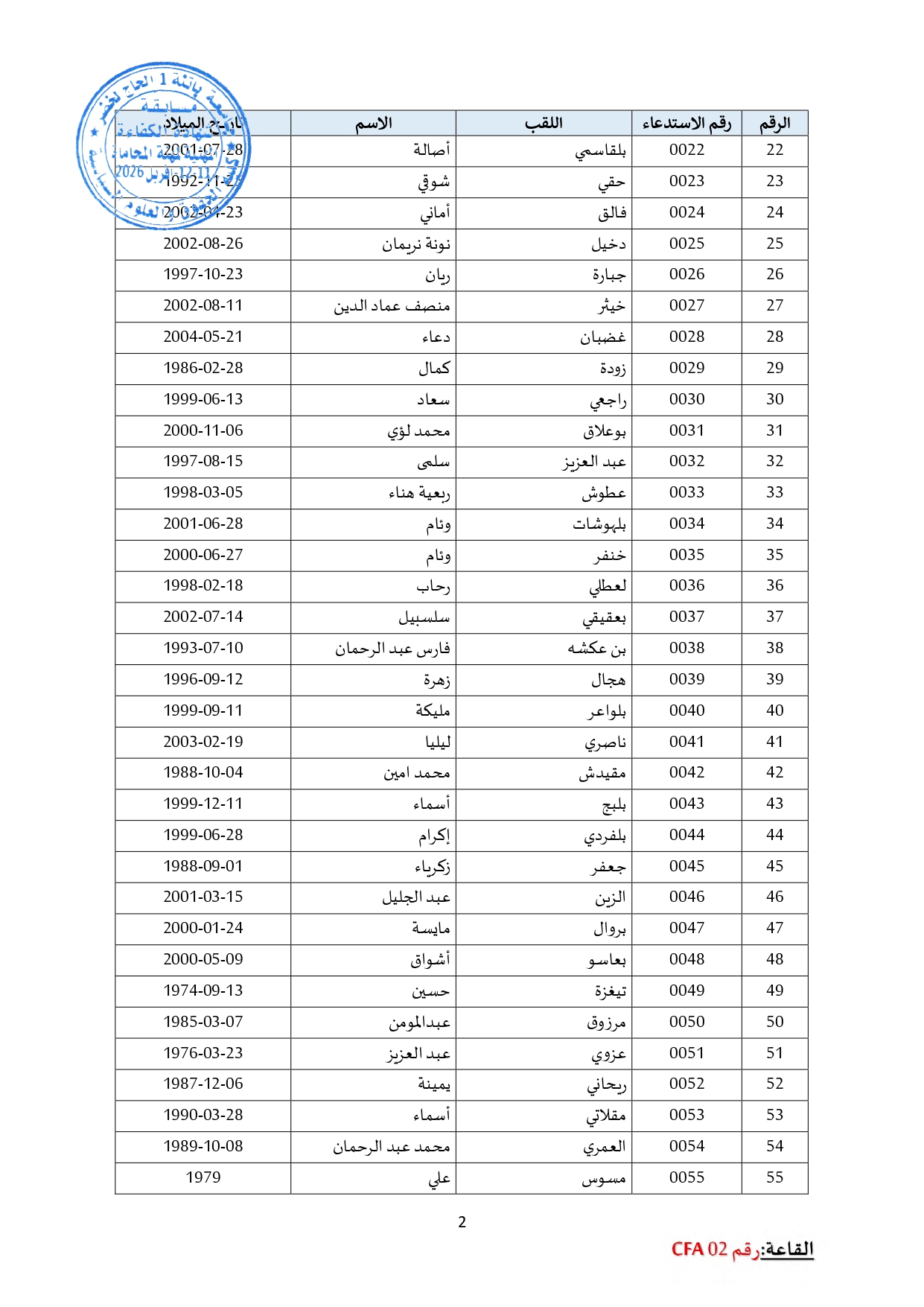 توزيع مترشحي مسابقة الالتحاق بالتكوين للحصول على شهادة الكفاءة لمهنة المحاماة على القاعات و المدرجات – دورة 2026 –