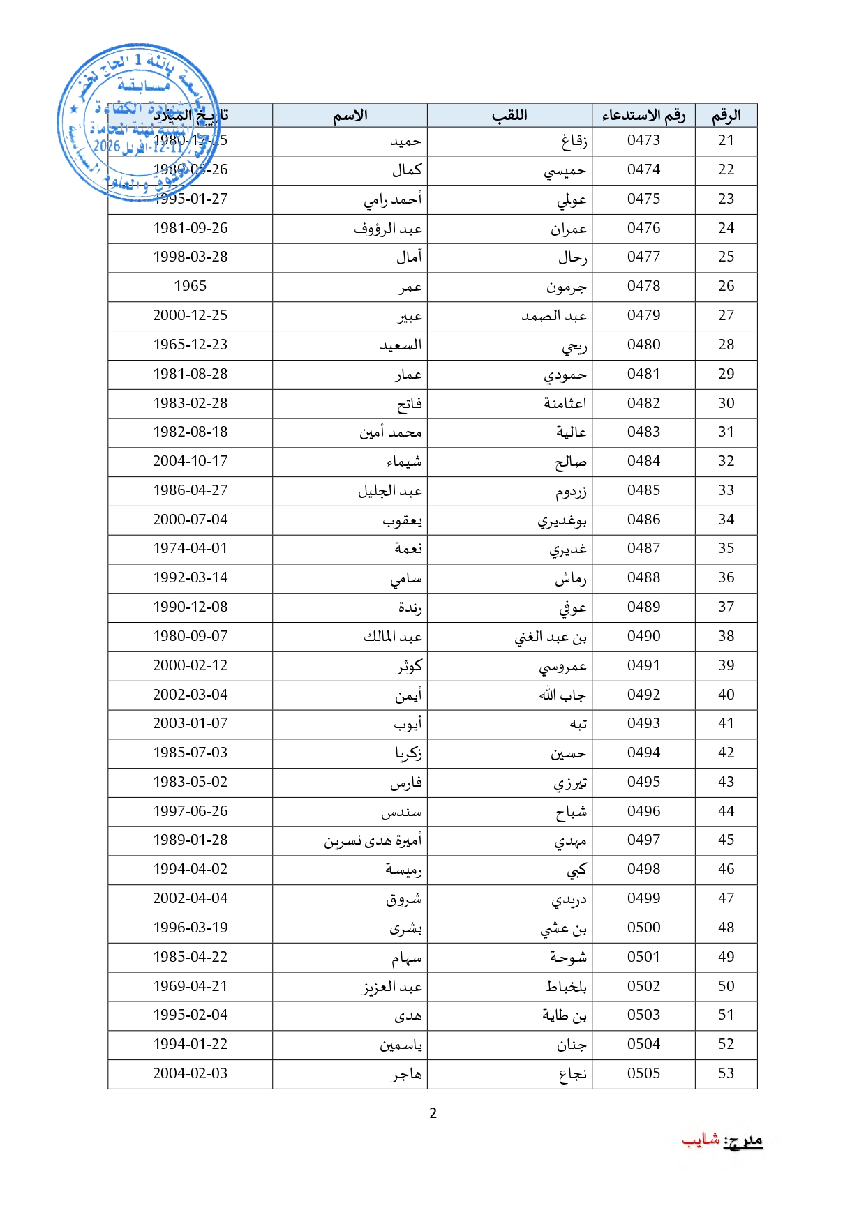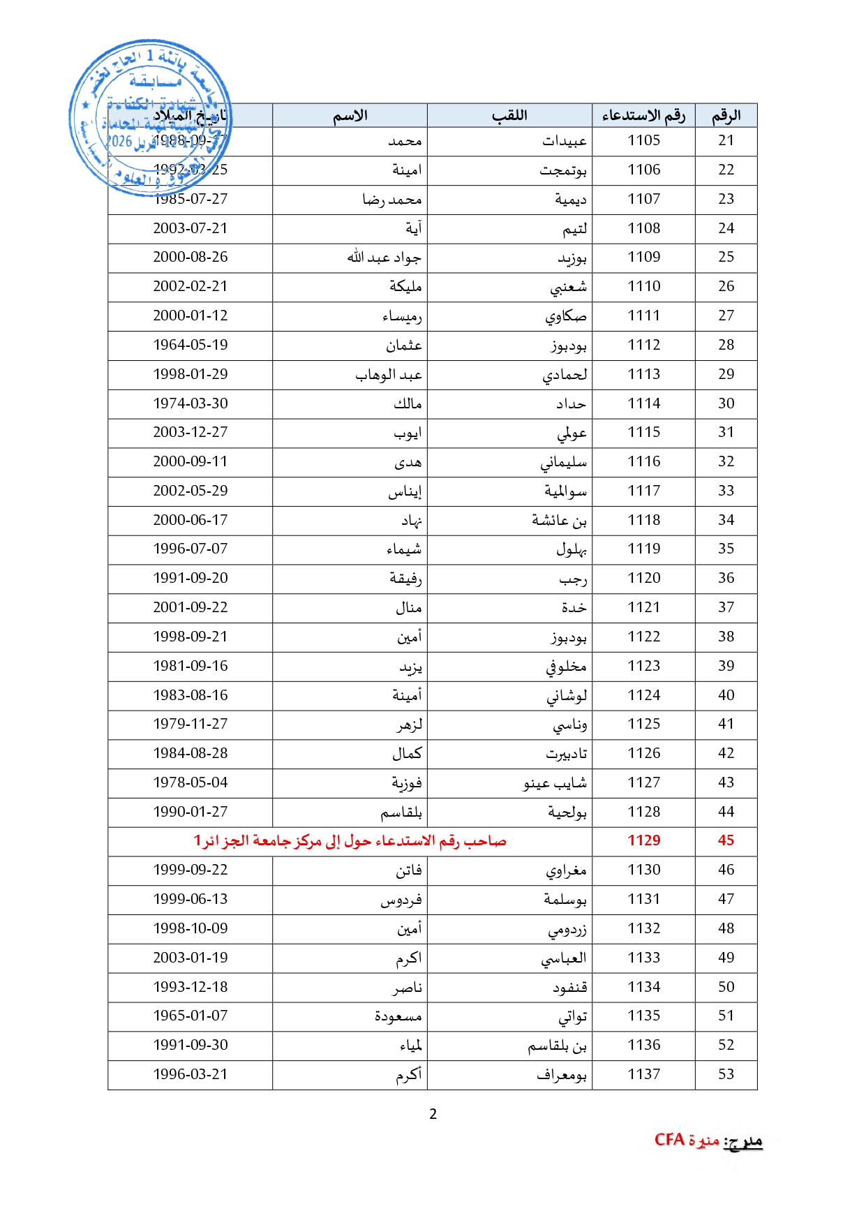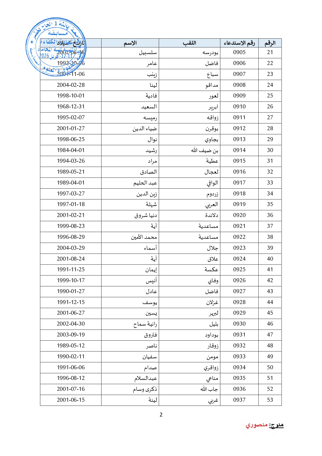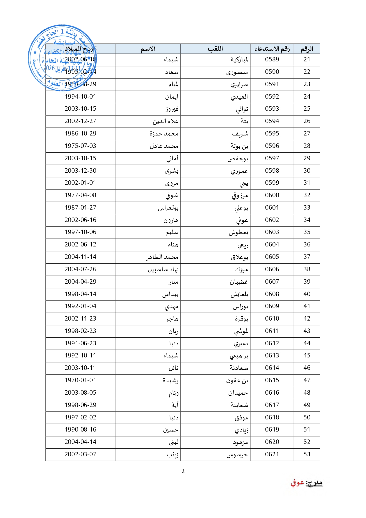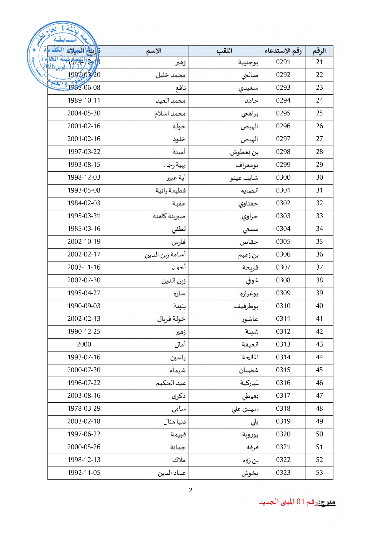 توزيع مترشحي مسابقة الالتحاق بالتكوين للحصول على شهادة الكفاءة لمهنة المحاماة على القاعات و المدرجات – دورة 2026 –