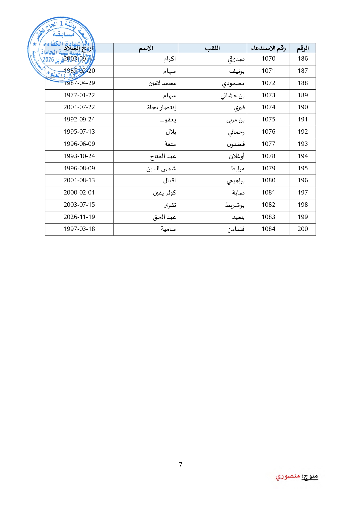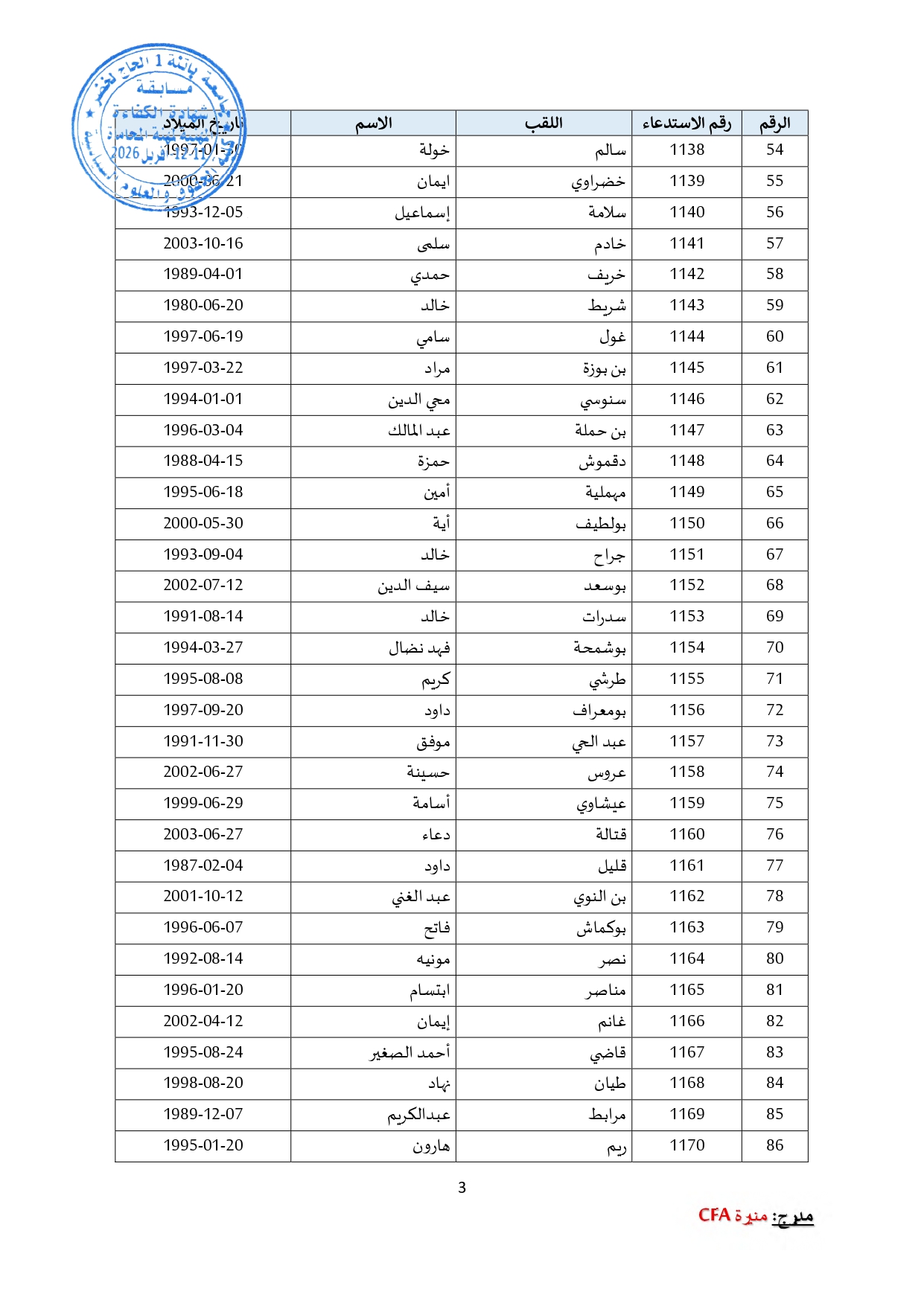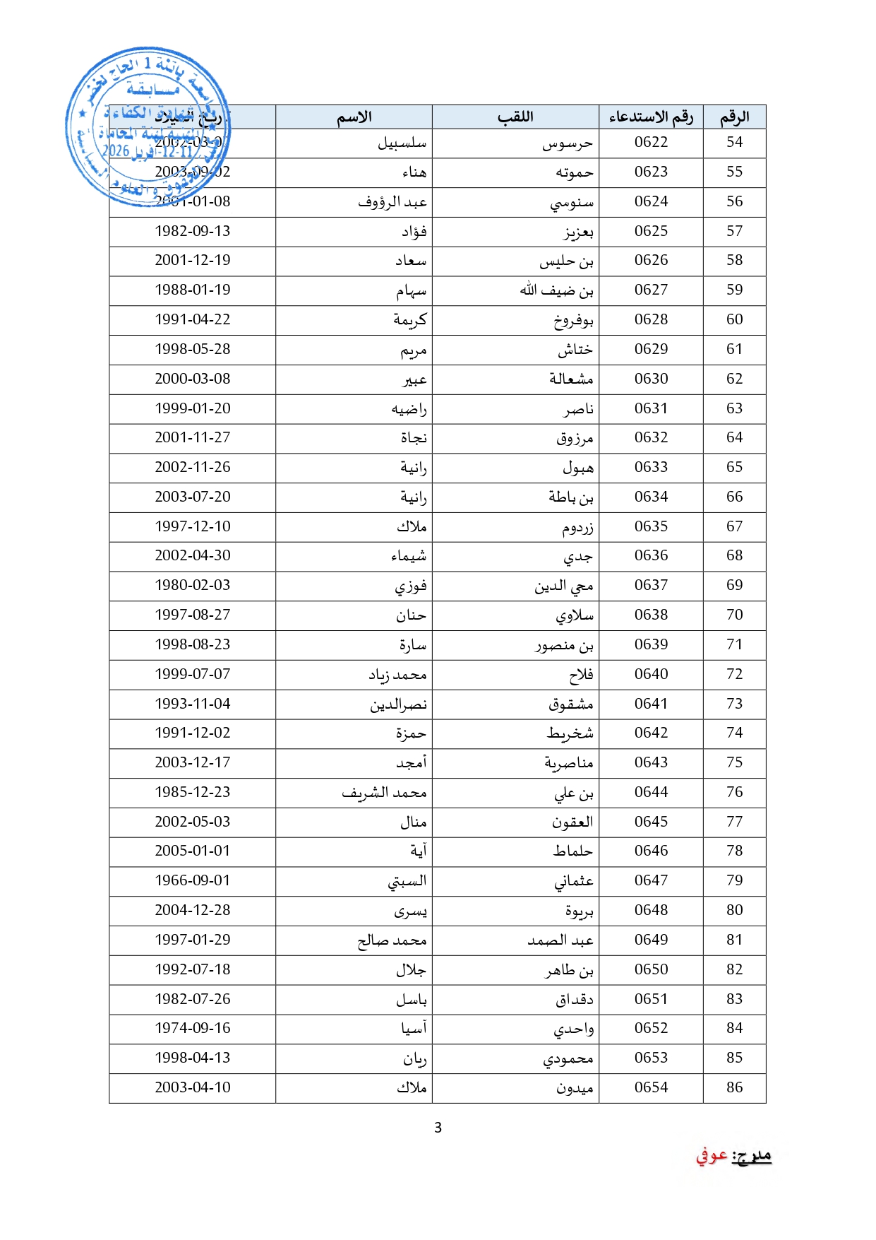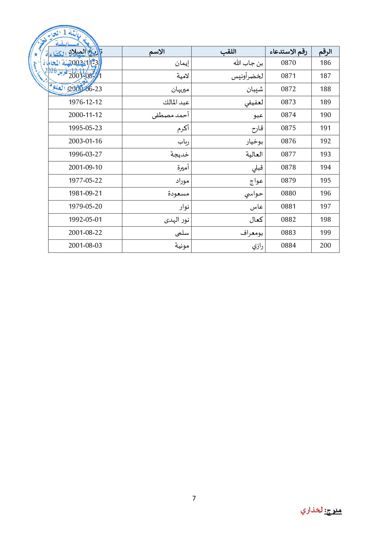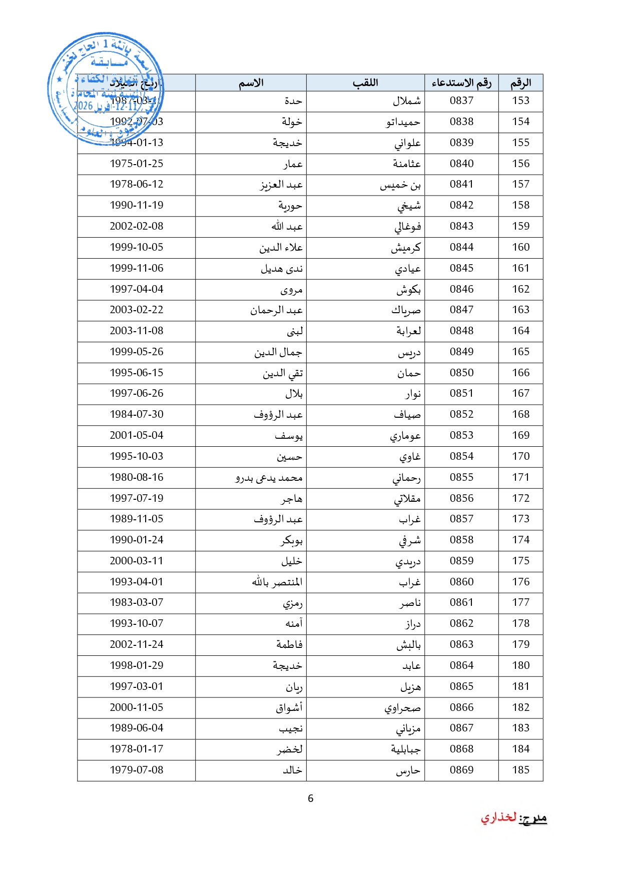 توزيع مترشحي مسابقة الالتحاق بالتكوين للحصول على شهادة الكفاءة لمهنة المحاماة على القاعات و المدرجات – دورة 2026 –