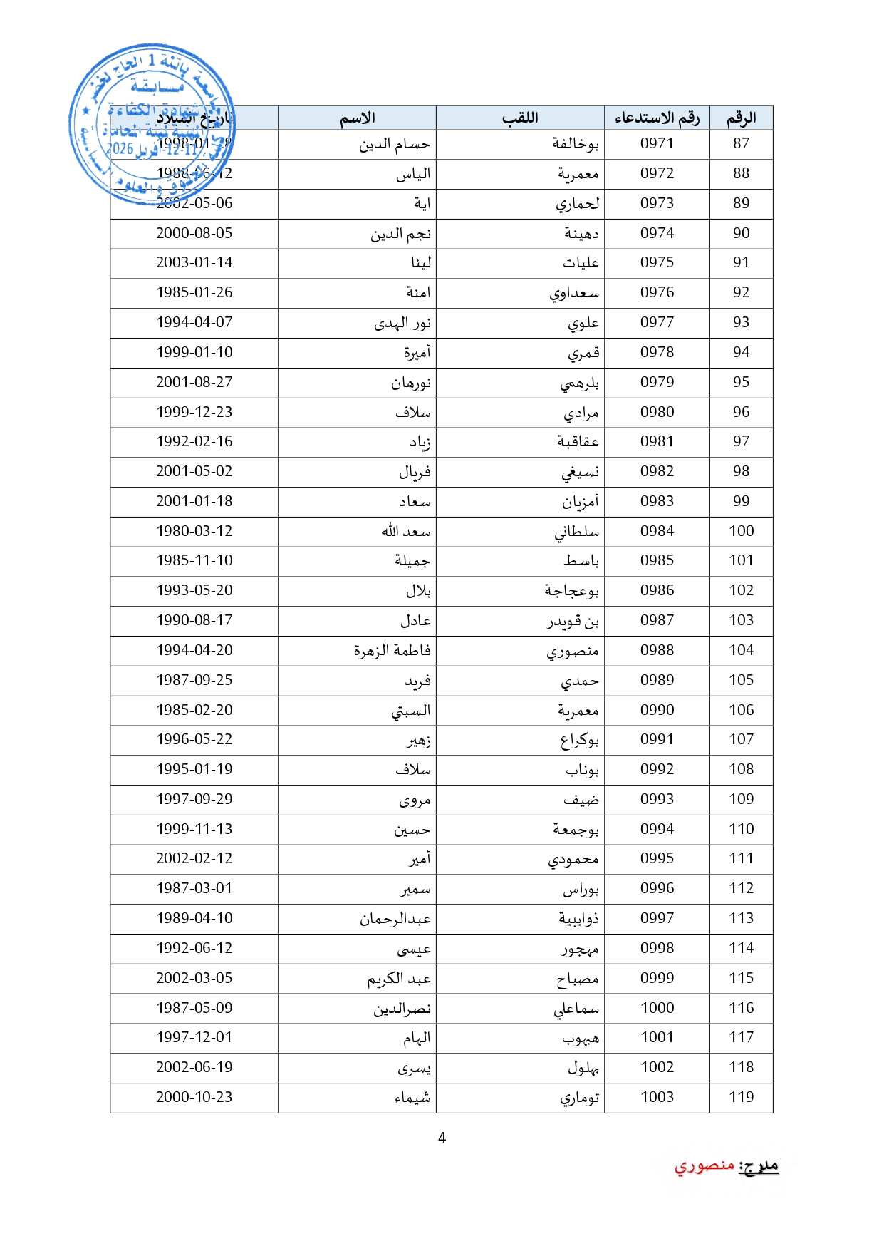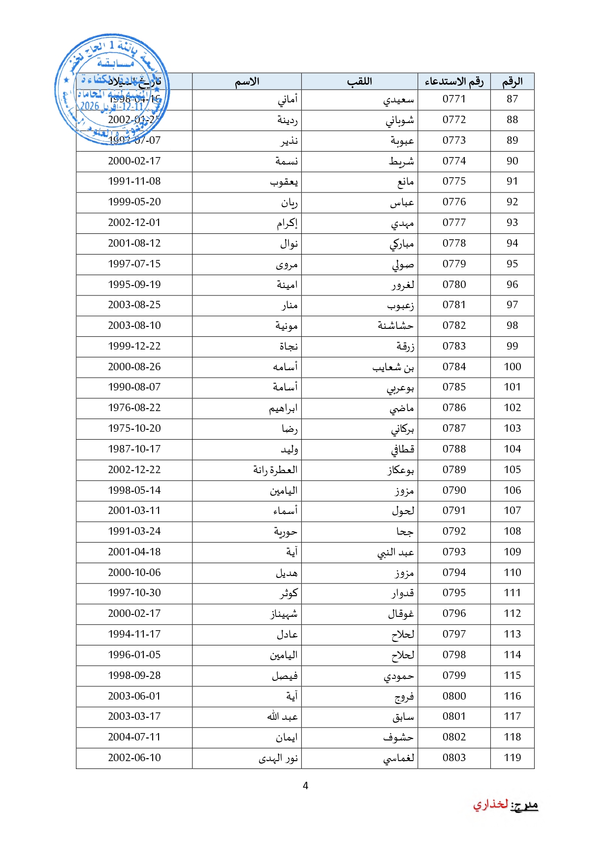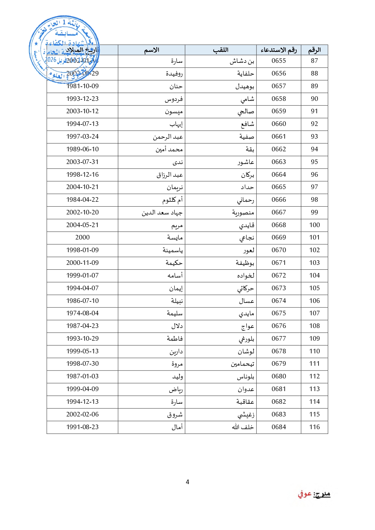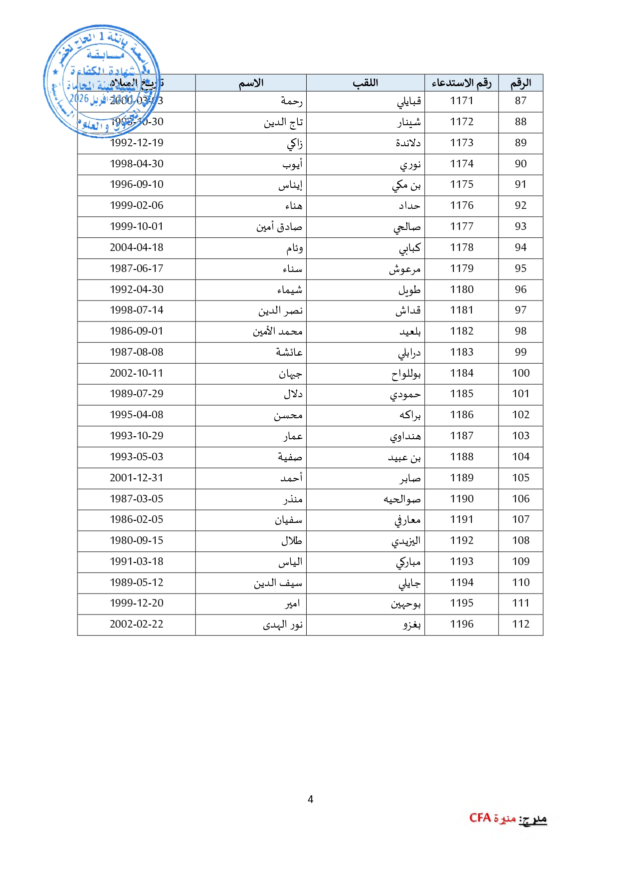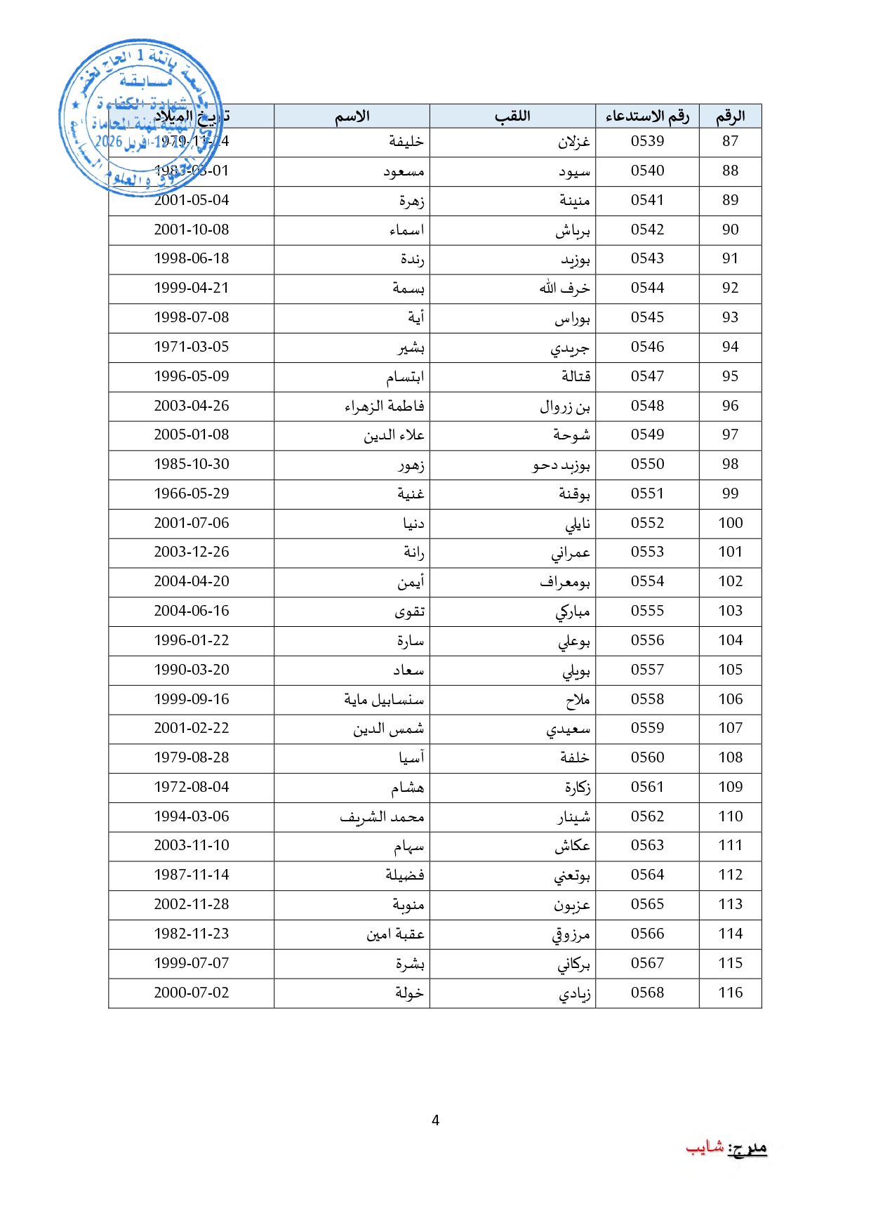 توزيع مترشحي مسابقة الالتحاق بالتكوين للحصول على شهادة الكفاءة لمهنة المحاماة على القاعات و المدرجات – دورة 2026 –